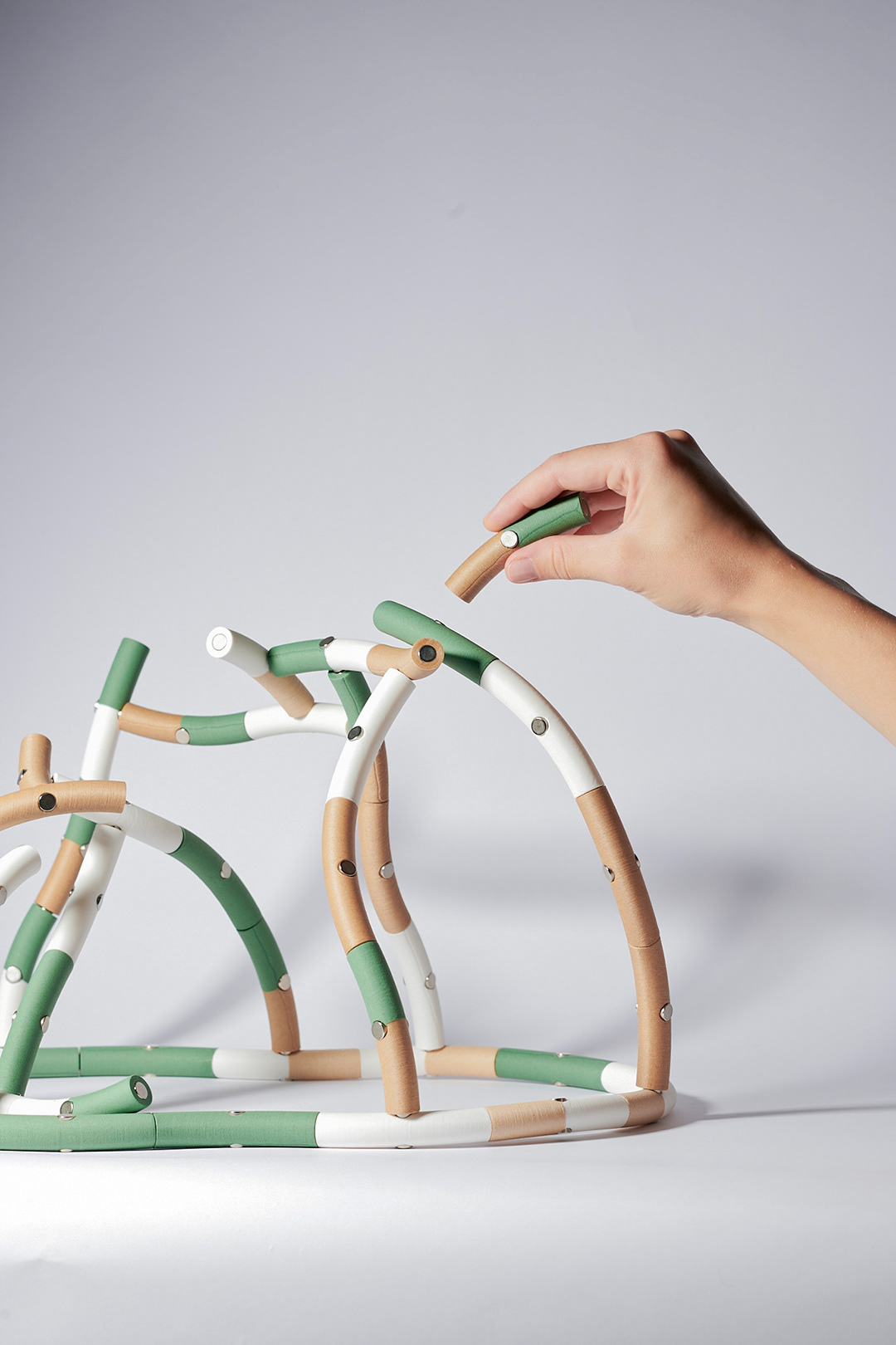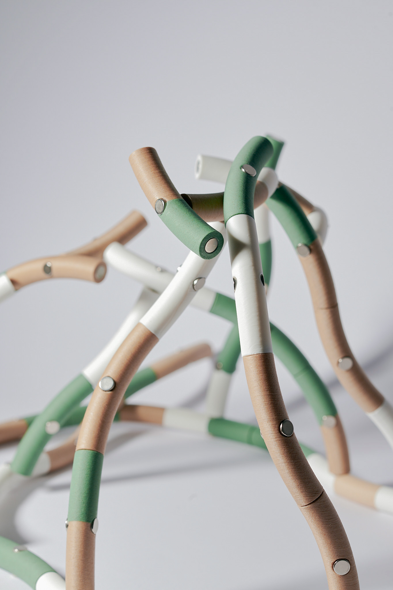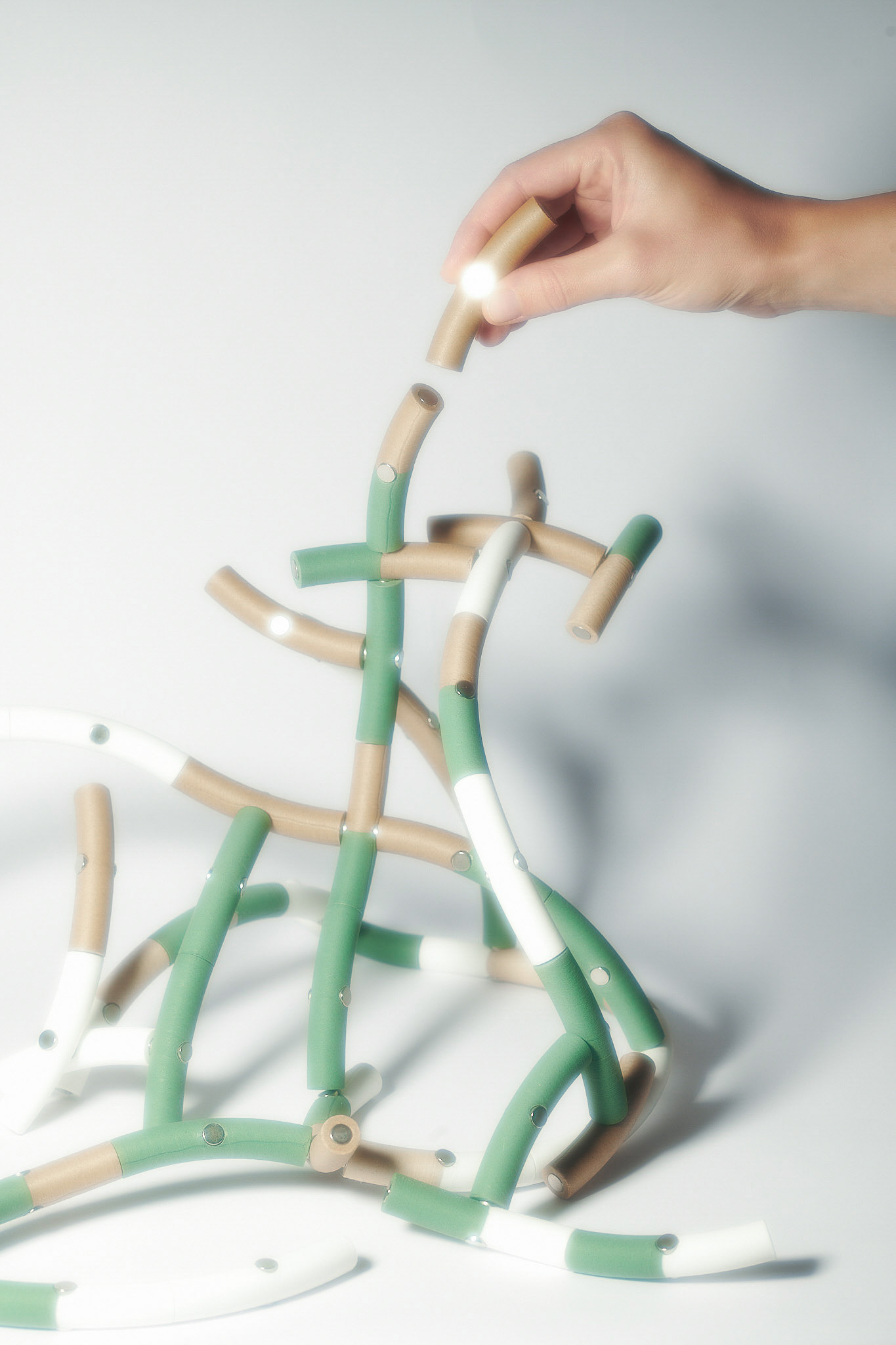 The pieces interact with each other — some attract, others repel — limiting full user control over the final structure. This results in dynamic, balanced, and delicate assemblies shaped by natural logic. Flor-i can serve as a stacking game, an educational tool, a decorative object, or a spatial element.
