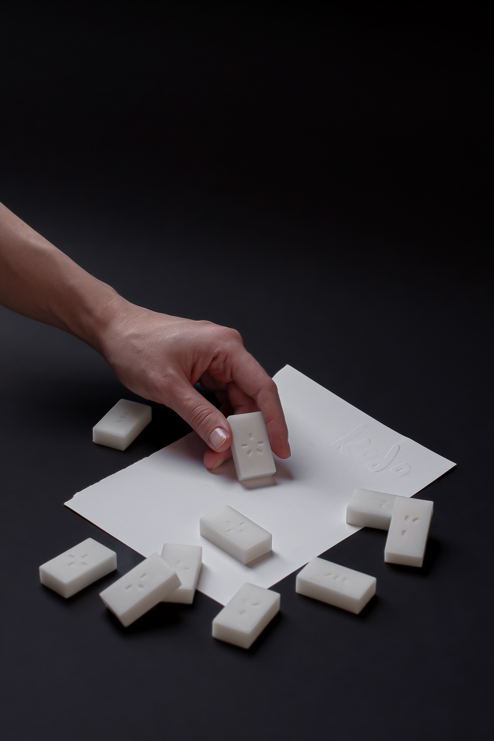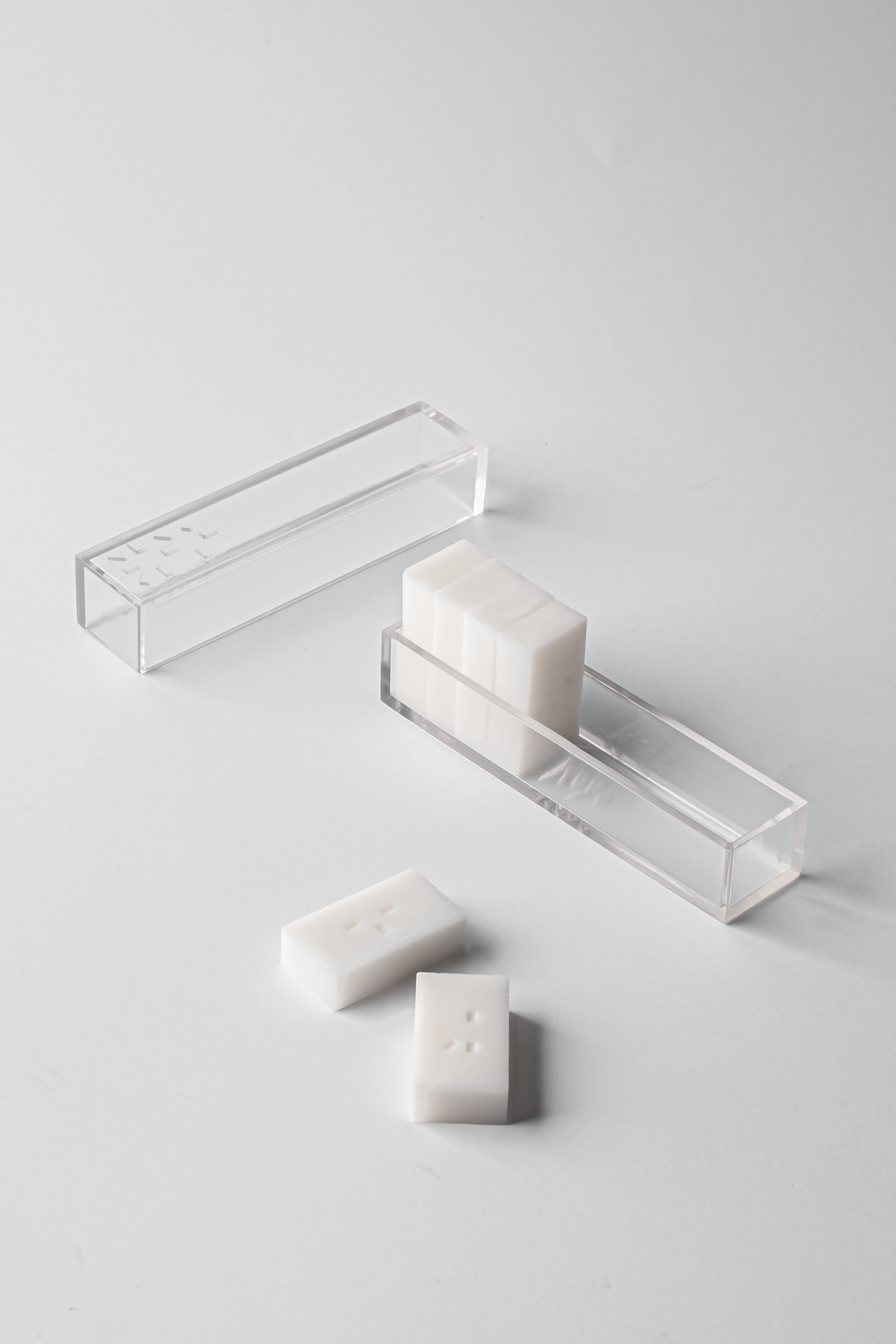 Named after the Japanese tradition of incense appreciation (Kōdō), the project invites users to shift their perception from seeing to feeling. Each element bears a unique tactile symbol for identification, allowing for an intuitive selection process. Conceptually, these individual markings are fragments of a larger whole, uniting to form a single, complete symbol on the packaging.