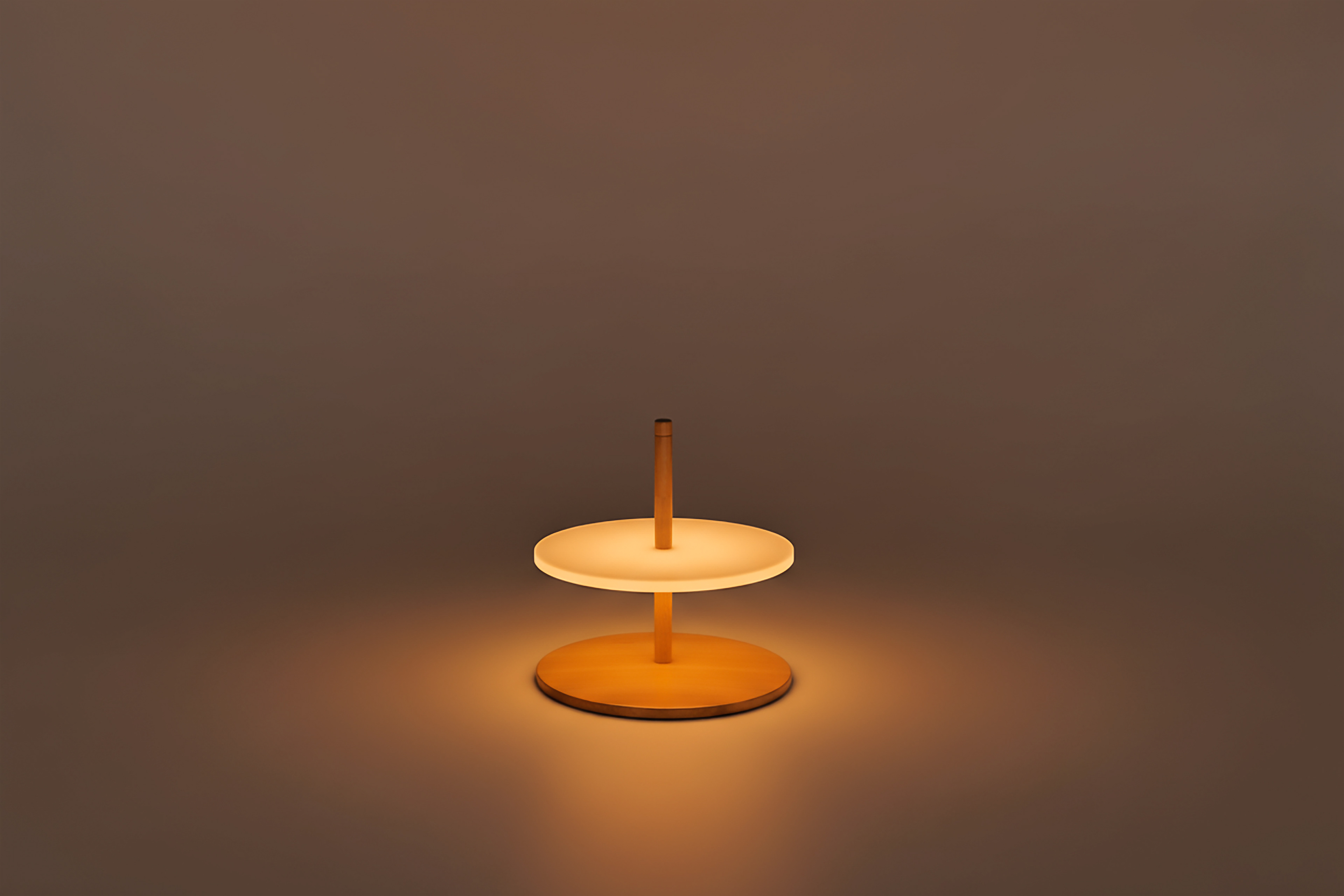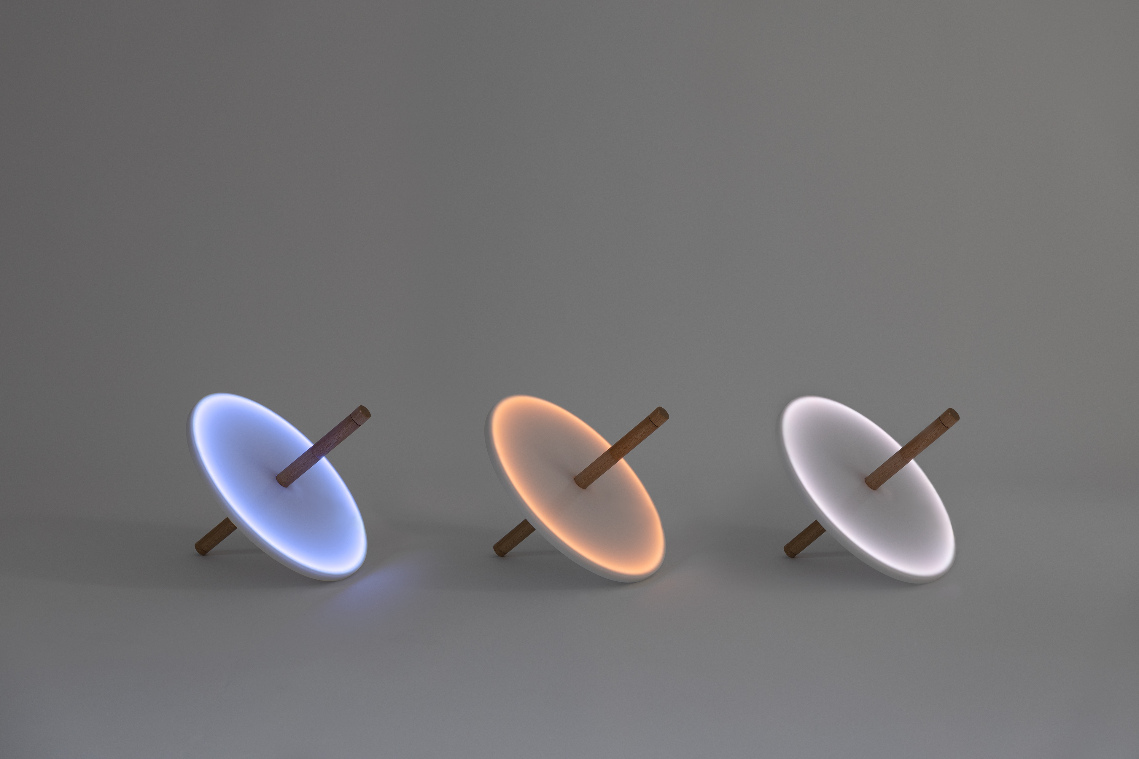 The lamp’s design allows for horizontal use or, when combined with the seat, as a standing lamp providing vertical illumination. Its 360-degree rotation and integration with the seat create opportunities for varied visual and functional experiences. Three color modes—neutral (close to daylight), warm orange (promoting relaxation), and cool blue (supporting focus)—address different user needs.